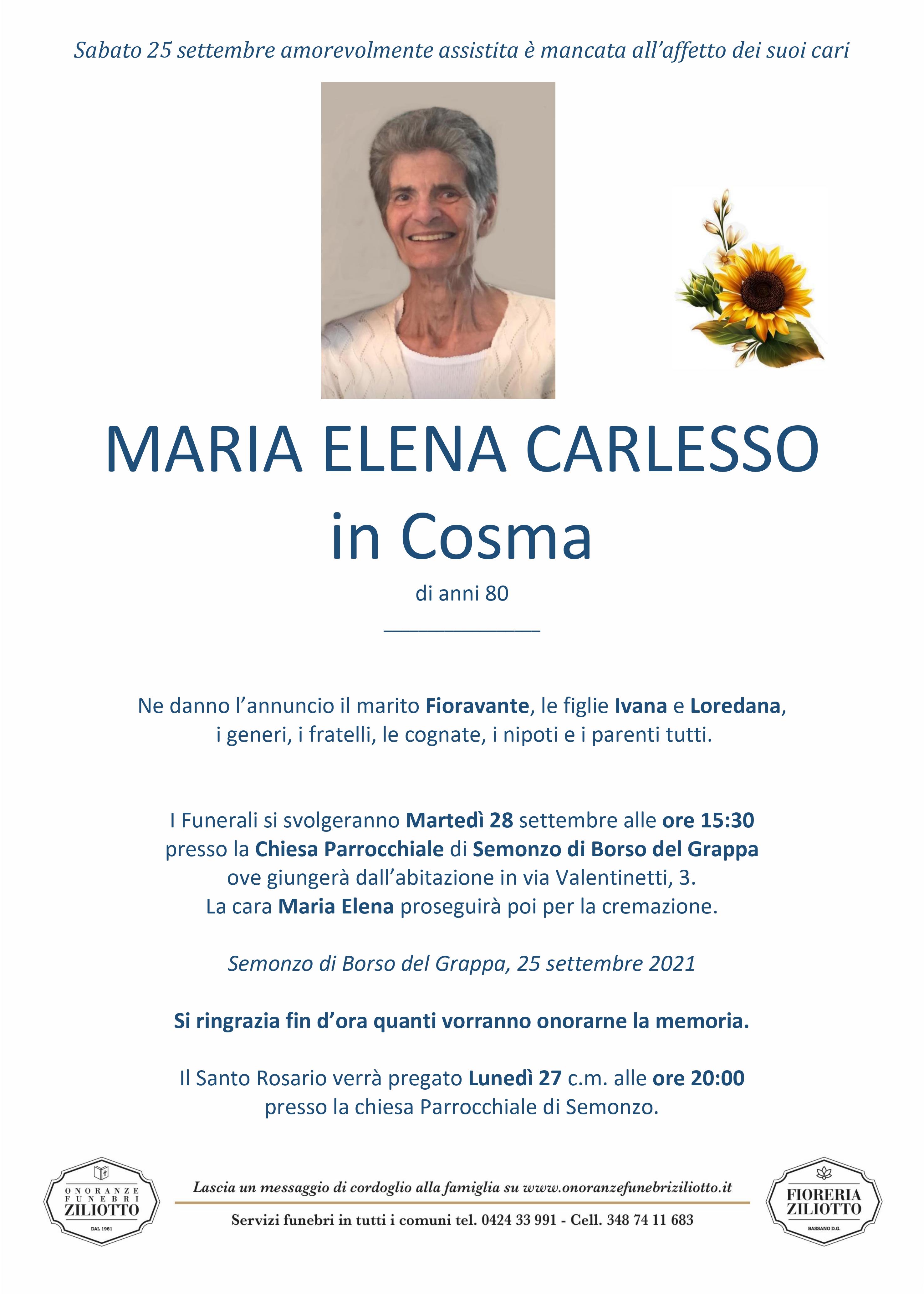 I Funerali si svolgeranno Martedì 28 settembre alle ore 15:30