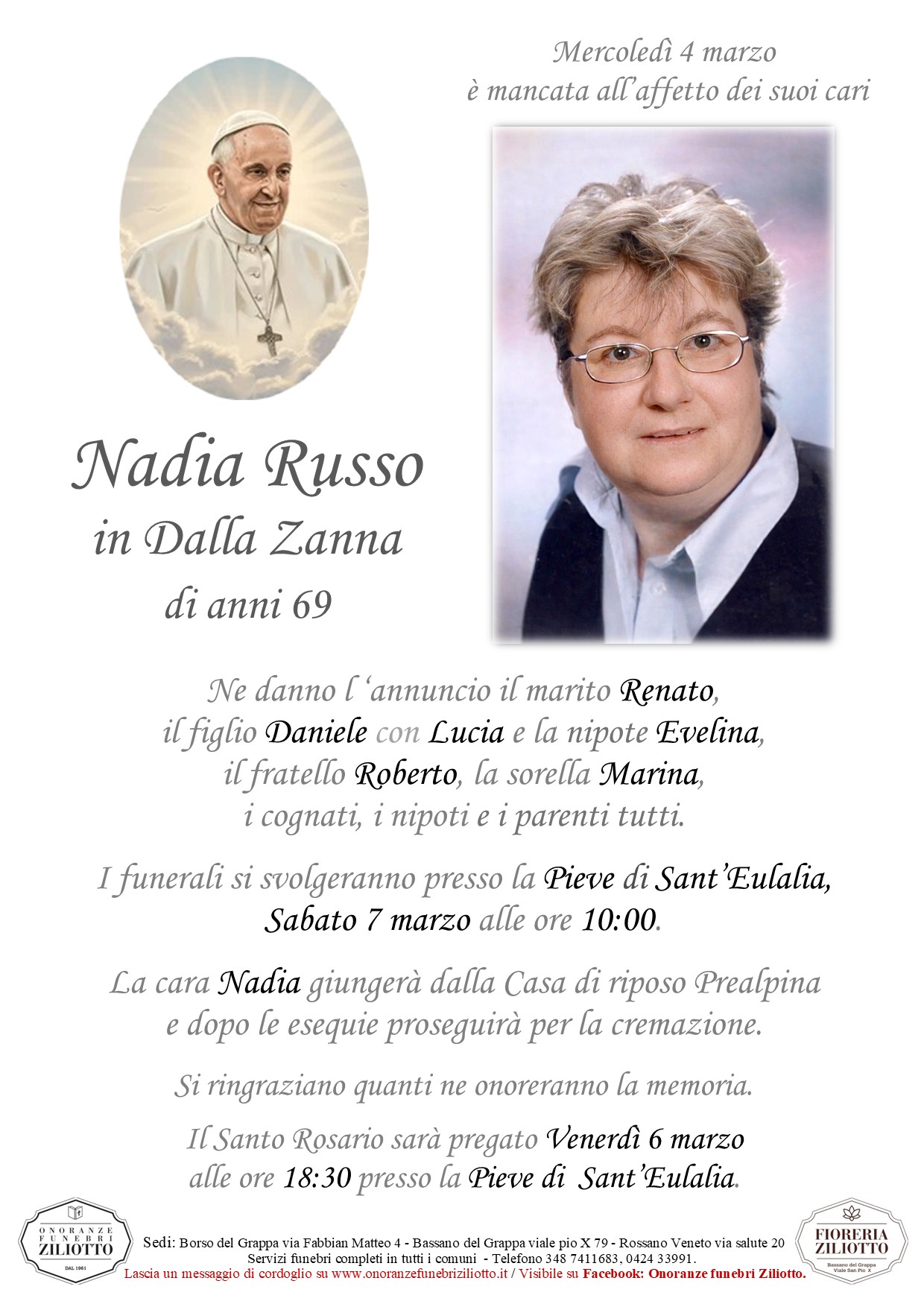 e dopo le esequie proseguirà per la cremazione.